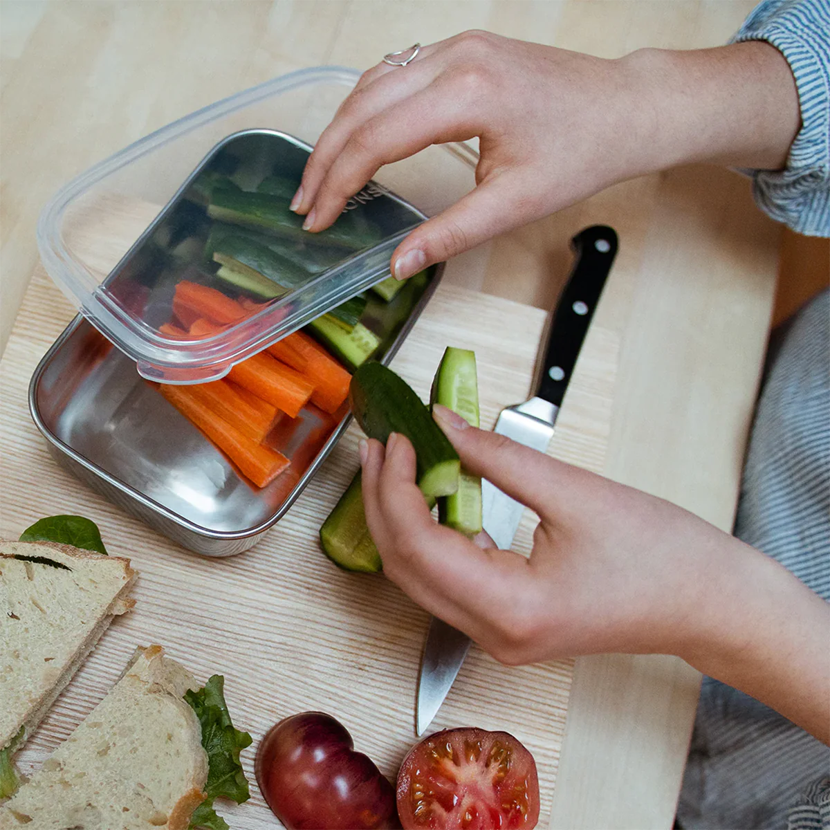 Perfect waste-free solution for kids lunches, takeout, picnics, travel, outdoor adventures and bulk shopping. Pack snacks, lunches and main meals while reducing single-use packaging. Also ideal for kitchen organization, pantry makeovers, meal prep and family leftovers. This reusable bento-style lunchbox is versatile enough for many food-storage needs at home and on the go, while saving trash from our ever-growing landfills. Flexible silicone lids are easy for little hands to open, and the leak-proof feature keeps spills at bay. A non-toxic stainless steel and silicone combination make these lunchboxes the best zero-waste solution for you and the planet.